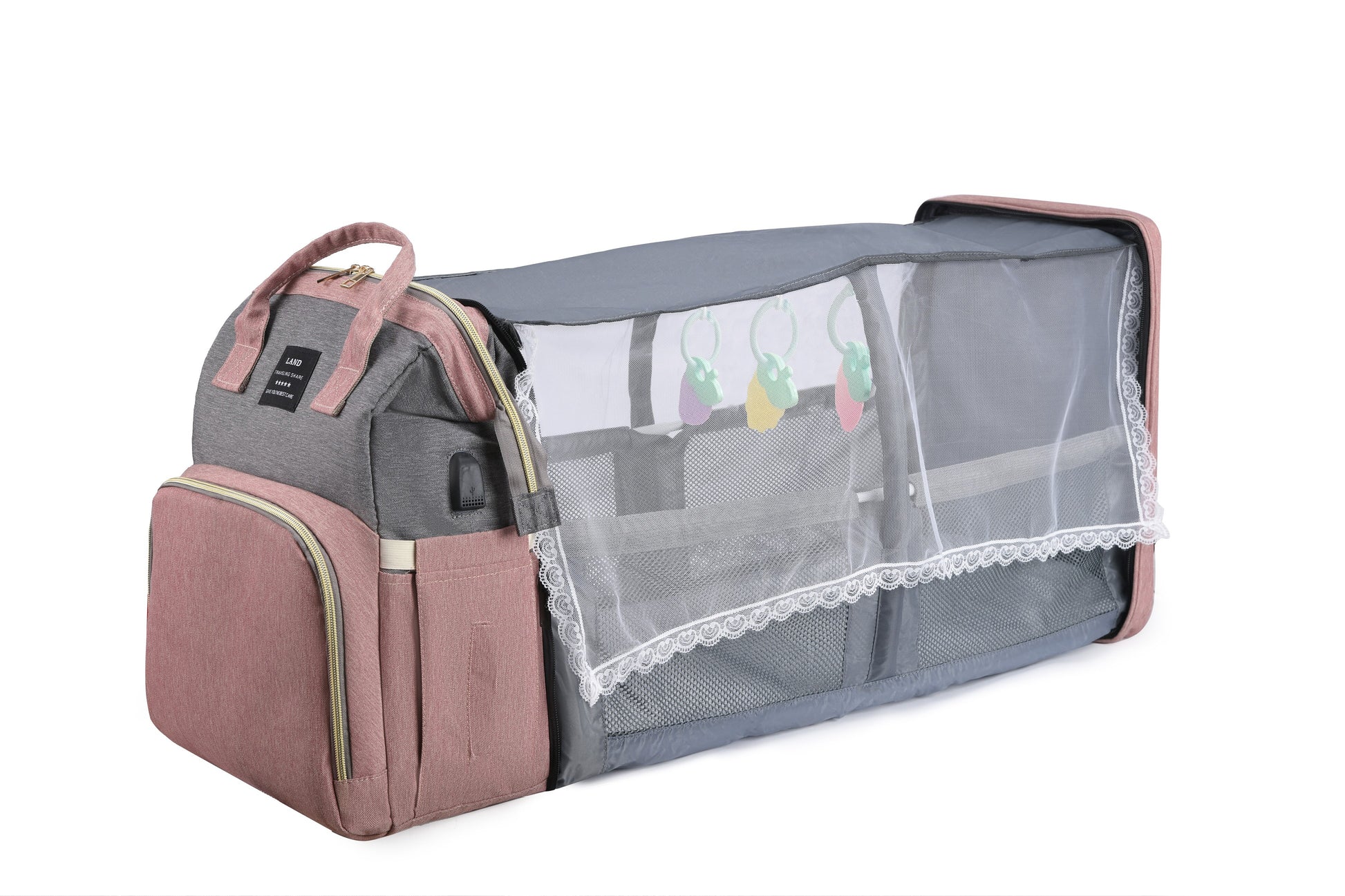 Mommy Baby Diapers Bags Backpack Changing Pad Shade Mosquito Net USB Charging Stroller Hanging Pocket Free Toys
