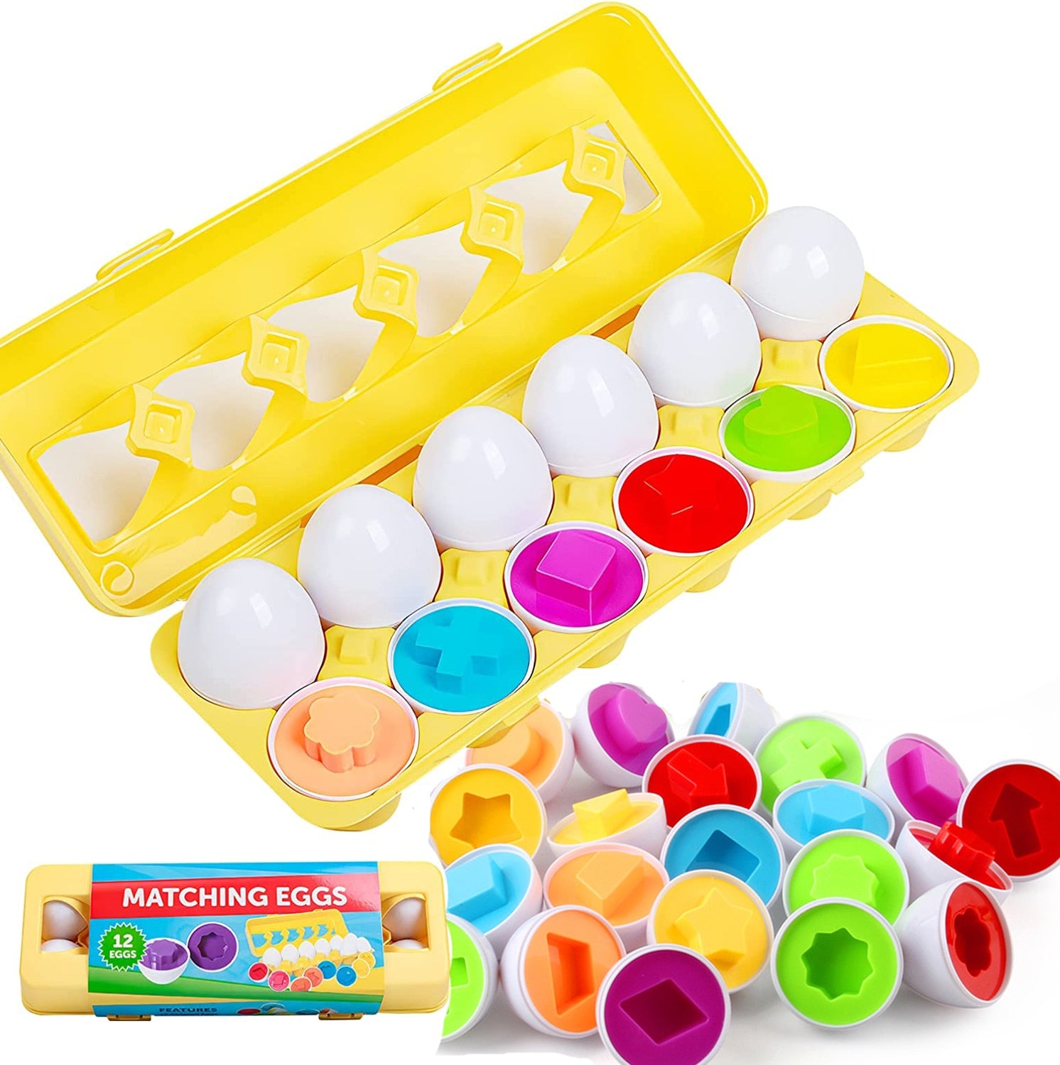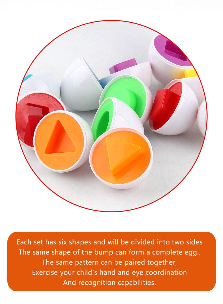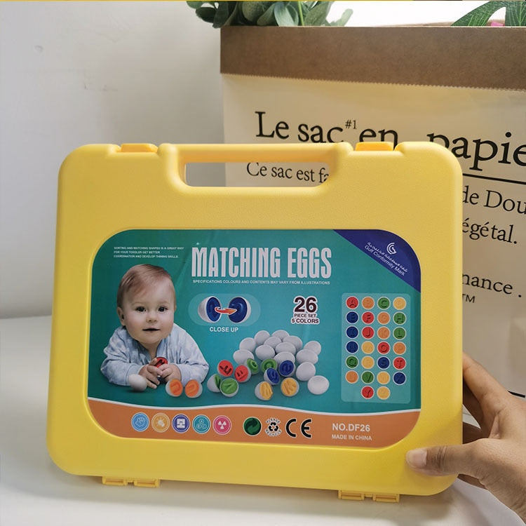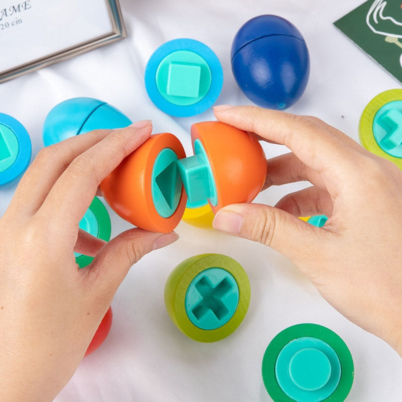Designed to captivate the imagination and engage the senses, this interactive toy is specifically crafted to enhance your baby's development and foster early learning in a fun and engaging way. Ideal for children aged 2 to 3 years, this set of Shape Matching Eggs is inspired by Montessori educational principles, promoting hands-on exploration and cognitive development.