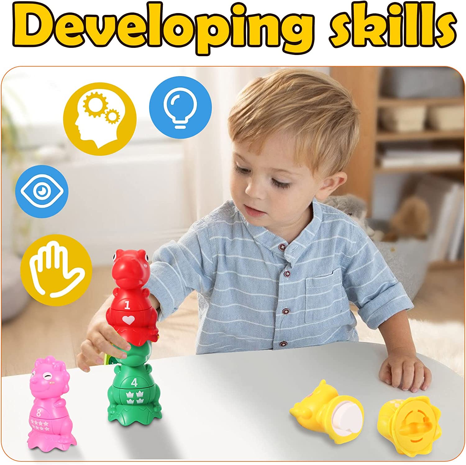 The Smart Egg Toy offers a stimulating sensory experience through its vibrant colors, smooth texture, and unique egg-shaped design. Each egg features a different shape, such as circles, triangles, squares, and more, encouraging children to discover and identify different geometric forms. By manipulating the eggs, kids can develop fine motor skills, hand-eye coordination, and shape recognition abilities, laying a strong foundation for future learning.